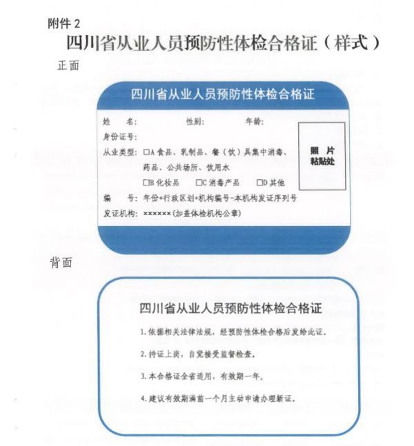 據(jù)四川省衛(wèi)生健康委員會、四川省財政廳、四川省農(nóng)業(yè)農(nóng)村廳、四川省市場監(jiān)督管理局、四川省藥品監(jiān)督管理局川衛(wèi)規(guī)〔2023〕2號關(guān)于進一步做好從業(yè)人員預防性體檢工作通知,自2023年4月1日起將對健康證辦理做出部分調(diào)整,變化主要如下: