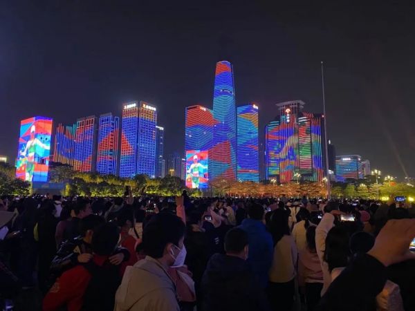 “好壯觀!充滿現(xiàn)代感、科技味十足,特‘深圳’?!?0多歲的深圳白領(lǐng)龍小姐自豪地表示,“燈光秀真的給深圳市民帶來(lái)了滿滿的幸福感!”