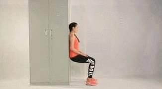 雙腳打開與肩同寬,腳尖向前,上身挺直靠墻屈髖屈膝下蹲保持,腰背貼緊墻壁,收腹,骨盆保持中立位,膝蓋朝向第二腳趾方向,盡量保持小腿與地面垂直。