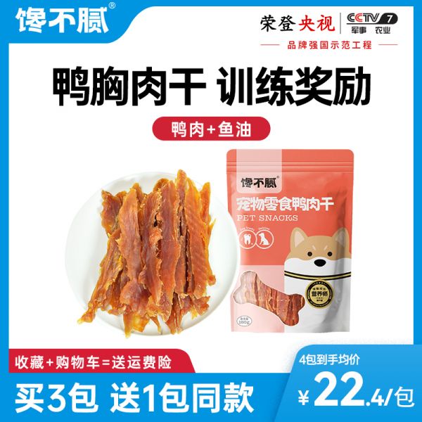 在訓(xùn)練過程中還可以給泰迪獎(jiǎng)勵(lì)一些小零食,提高它訓(xùn)練的積極性。推薦這款“饞不膩鴨肉干”,純鴨肉制作,涼性原料,含有豐富蛋白質(zhì),狗狗吃了還不容易上火!