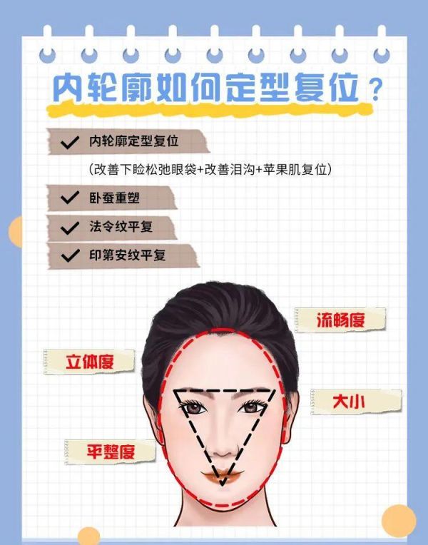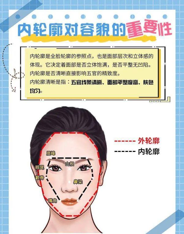 內(nèi)輪廓是臉部整個輪廓的參照點(diǎn),也是臉部層次感和立體感的表達(dá)。它決定了臉部是否立體、飽滿,是否光滑、無凹陷。
