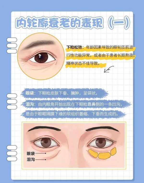 眼袋:下眼瞼的皮膚下垂、浮腫、松垮。