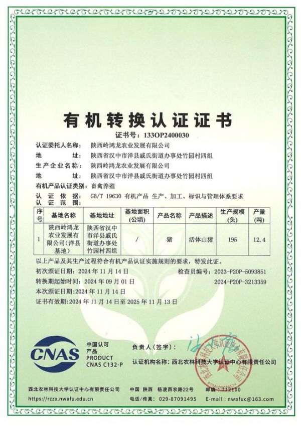 陜西嶺鴻龍農(nóng)業(yè)發(fā)展有限公司自 2023 年 9 月 13 日創(chuàng)立,扎根于朱鹮故鄉(xiāng)——陜西漢中洋縣戚氏街道竹園村四組。此地作為朱鹮的人工飼養(yǎng)發(fā)源地與全國有機示范縣,自然資源得天獨厚,為有機山豬養(yǎng)殖筑牢根基。公司積極響應(yīng)國家“健康養(yǎng)殖”倡導(dǎo),斥資 200 萬元精心打造 70 畝現(xiàn)代化養(yǎng)殖基地,全力為消費者呈上放心、健康的有機豬肉。