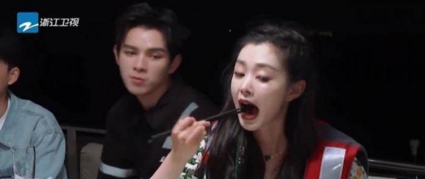 節(jié)目錄制中,宋軼釋放吃貨本性雙眼亮光大口吃肉,坐在旁邊的何昶希十分驚訝,眼神透露著不可思議。