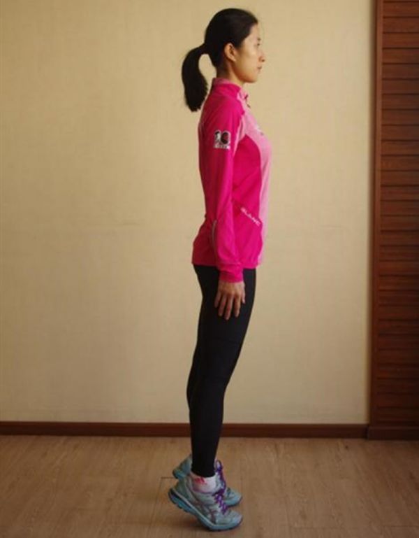 練習時,身體保持正直,收緊臀部和腿部肌肉,以腳趾頭站立,盡量提起腳跟,越高越好,但不應感到疼痛。體弱者可手扶椅背練習或者扶墻練習。