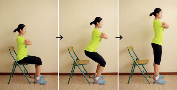 (3)向下坐之前保持身體直立,然后臀部慢慢開始靠近椅子坐下。