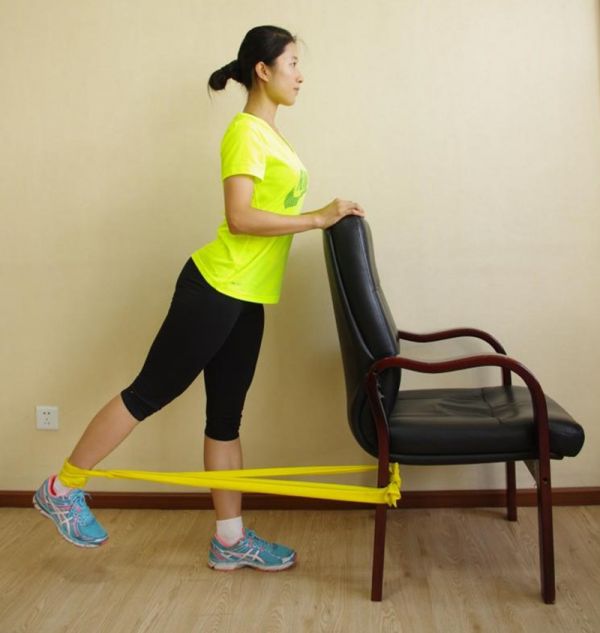 ?。?)手扶椅背自然站立,直腿盡力向后伸,直到感覺不能再向后伸為止,保持2-3秒;